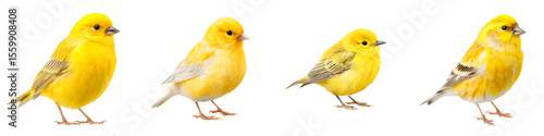 Bright Yellow Canaries: Small Birds Posing on White Background