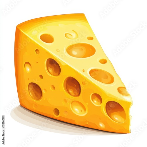 Bright yellow cheese wedge sits on a white background showcasing its holes and texture in a vibrant illustration