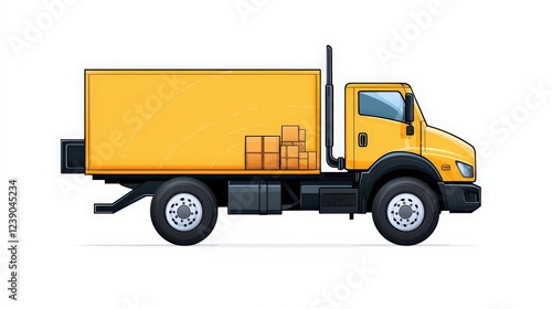 Bright Yellow Delivery Truck Side View with Boxes for Transportation and Logistics Concepts
