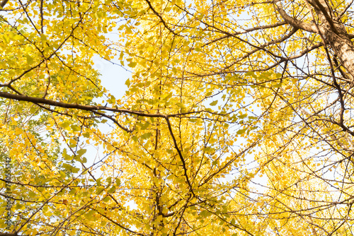 Bright yellow leaves of the ginkgo tree