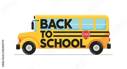 Bright Yellow School Bus Illustration Welcoming Students Back to School with Simple Design and White Background