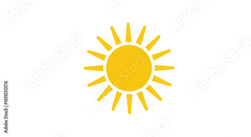 Bright Yellow Sun Icon on White Background, Perfect for Summer Designs or Weather Forecasts