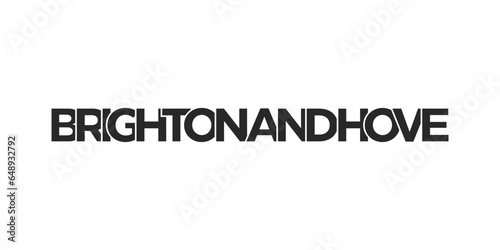 Brighton and Hove city in the United Kingdom design features a geometric style illustration with bold typography in a modern font on white background.