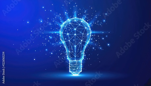 Brilliant Idea: Abstract polygonal lightbulb glowing with energy, symbolizing innovation, creativity, and inspiration. A burst of light and data points illuminate the concept of bright ideas.