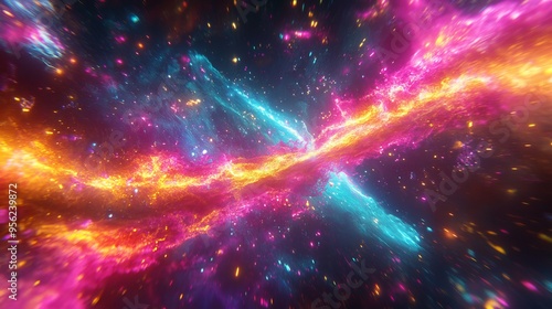 Brilliant light ignites, followed by an explosive burst of radiance. A vibrant neon streak etches itself into the void.