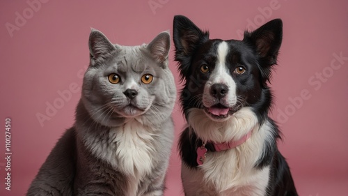 cat, dog, border collie, portrait, animal portrait, felino, canino, duet, closeup, studio shot