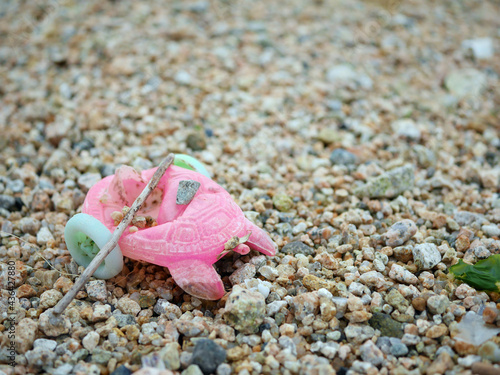 Broken turtle toy on the beach