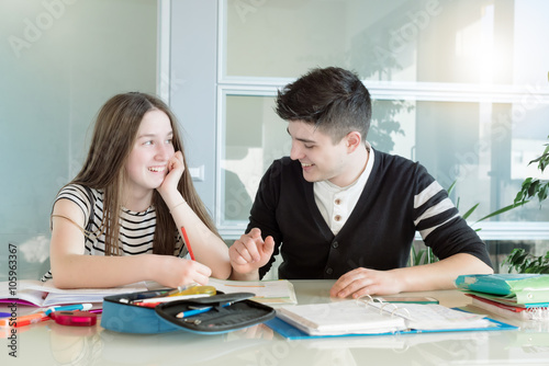 student, education, computer, teenage, expo, help, boy, together, laptop, college, homework, young, people, girl, happy, caucasian, sister, brother, work, family, 2, study, desk, friends, writing