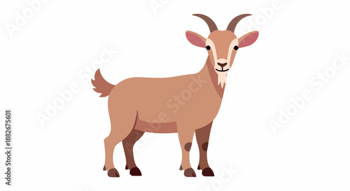 goat, animal, mammal, farm, domestic, horn, standing, isolated, cut-out, transparent, background, brown, fur, hoof, ear, face, wildlife, nature, pet, farm animal, flat, minimal, simple, clean, character, mascot, icon, web, mobile, app, design, print, children, children, education, farm animal