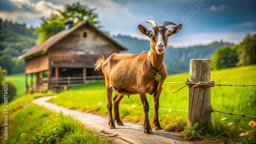 goat, farm, animal, rural, countryside, farm animal, agriculture, nature, grass, green, tether, roadside, photo, farm animal, country road, summer, spring, field, pasture, landscape, scenic, idylli, peaceful, serene, wildlife, rural scene, country life, farming, agricultural, daylight, sunny, brown