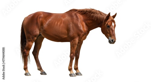 horse, brown, animal, mammal, equine, blood-red, standing, isolated, full, shot, profile, domestic, coat, vertebrate, farm, agriculture, nature, outdoors, wild, domesticated, standing still, portrait, photo, light, even, white, background, copy space, image, equestrian, ranch, rural, editable, hi-res, vector, print, editorial