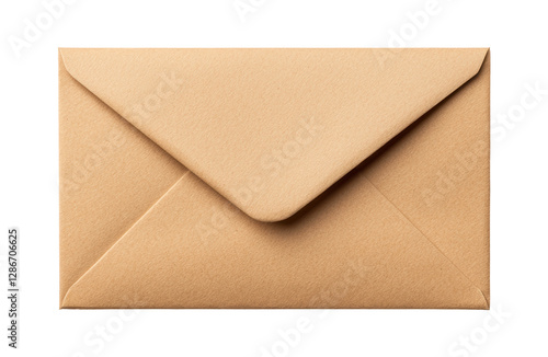 Brown kraft paper envelope with a V-shaped flap. The envelope has a smooth texture, sturdy paper material, and a minimalist design for letters or invitations. Isolated on transparent background, png.