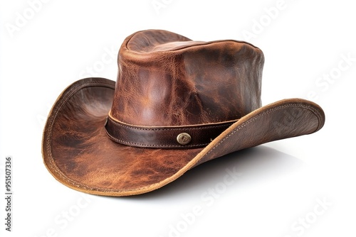Brown leather hat isolated on white background .Leather western hat with generative ai