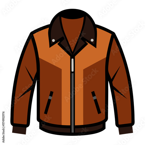 Brown Leather Jacket with Dark Accents, Vector illustration of a brown leather jacket featuring dark brown accents, zipper details, and a sleek collar, perfect for casual and edgy fashion.