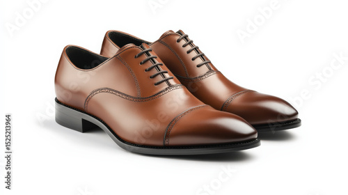 Brown leather oxford shoes on white background.