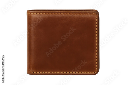 Brown leather wallet displaying detailed stitching, symbolizing financial professionalism against clean transparent backdrop