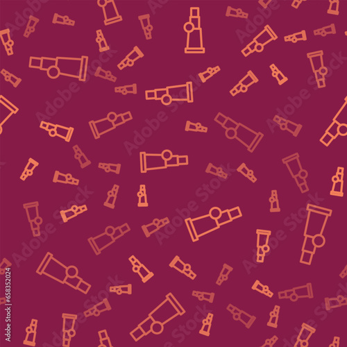 Brown line Telescope icon isolated seamless pattern on red background. Scientific tool. Education and astronomy element, spyglass and study stars. Vector
