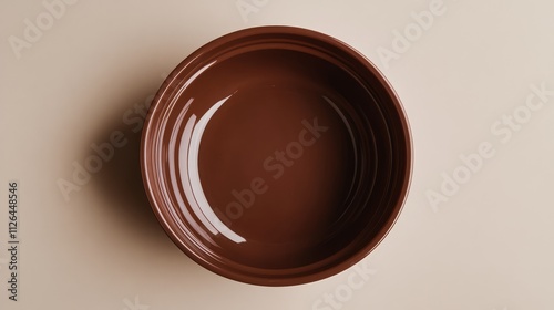 Brown plastic bowl viewed from above on a neutral background showcasing its empty interior and smooth surface for minimalist design concepts
