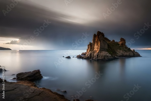 sea, sunset, ocean, beach, water, sky, landscape, coast, nature, rock, seascape, sunrise, rock, stone, sun, shore, wave, cloud, dusk, horizon, coastline, summer, travel, bay, dawn
