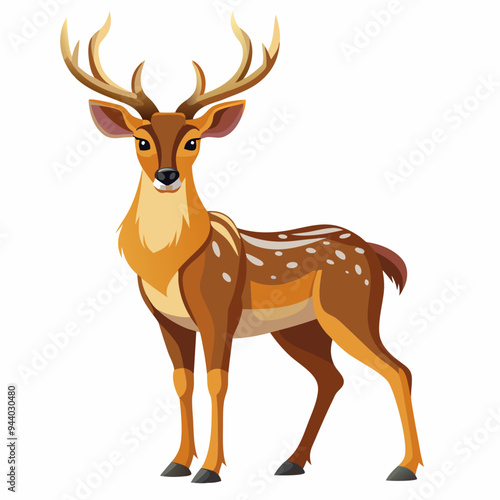 cervid, brown, spotted, antler, large, animal, wildlife, mammal, hoofed, grazing, forest, timberland, nature, wild, majestic, graceful, elegant, gentle, beautiful, cute, fawn, buck, doe, white, isolated, standing, front, side, illustration, cartoon, graphic, design, art