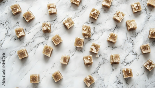 sugar, brown, cube, sweet, ingredient, cube, marble, table, food, dessert, raw, background, texture, organic, sweetener, surface, granulated, closeup, square, natural, rustic, top, view, kitchen, baking, pattern, pile, beige, hot drink, tea, minimal, arrangement, diet, soft, grey, solid, snack, preparation, grain, tabletop