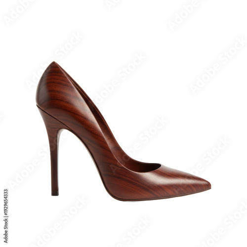 shoe, high heel, woman, fashion, footwear, elegant, style, wood grain, brown, designer, luxury, glamour, chic, modern, posh, formal, evening dress, unique, artistic, material, texture, single, isolated, studio shot, product, object, fashionable, feminine, sophisticated, accessory, apparel, clothing, wooden shoe, high heel, pump
