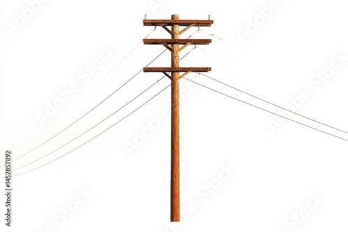 pole, cable, transmission, energy, power, electricity, wire, technology, infrastructure, distribution, support, construction, structure, engineering, transport, communication, industrial, electrical, service, system, utility, supply, network, high, voltage, wooden, brown, isolated, white, background, telecom, connection, grid, line, telecom, antennae, overhead, equipment, industry, tower