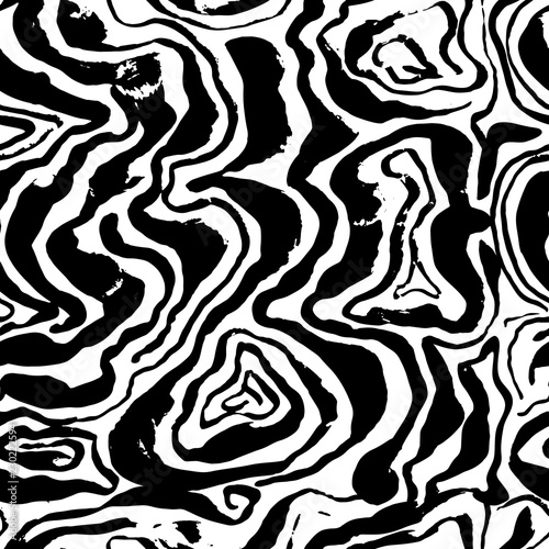 Brush painted wave seamless pattern. Black and white stripes grunge background.