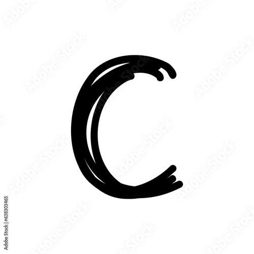 Brush stroke C letter latin english in doodle brush hand drawn style isolated on white background. For abc, education, logo, branding, font, alphabet, signboard, lettering, presentation.