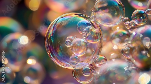 Bubbles with iridescent colors forming an intricate pattern, organic shapes, whimsical and enchanting.
