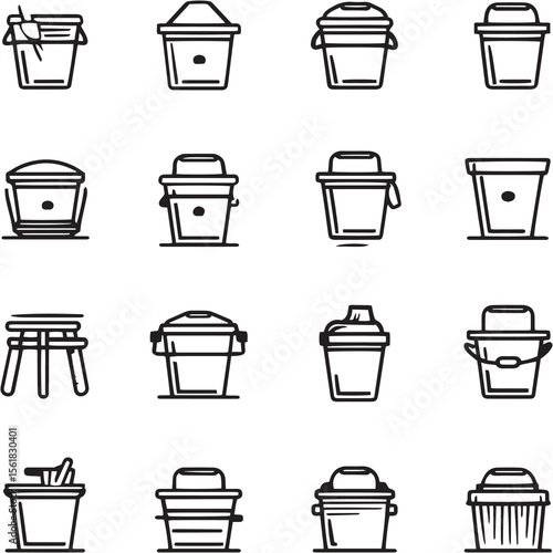 Bucket Black Line Editable Icons set