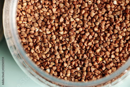 Buckwheat texture close up. Deficiency of essential goods