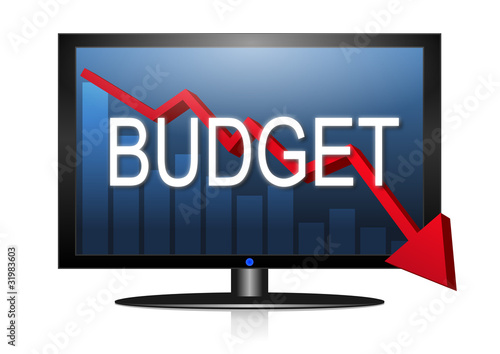 budget, shortening, shorten, budget, dip, depression, chart, business, management, finance, funding, money, trend, projection, cancellation, department, concept, planning, development, future, analysis, statistic, chart, arrow, negative, bottom, down, symbol, vector, graphic, analyse, presentation, blue, red, monitor, television, screen, lcd, led, text
