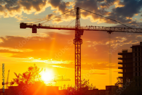 crane, building, construction, site, sunset, daytime, urban, development, progress, industry, architecture, city landscape, skyline, machinery, infrastructure, engineering, skyscraper, silhouette, work, equipment, structure, city, construction site, building site, dawn, evening, construction equipment
