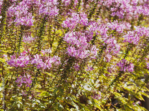Buisson dense de cléome épineux ou Fleur araignée (Cleome spinosa)