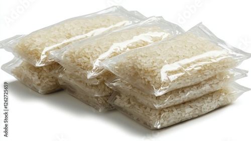 Bulk packing of rice grocery store product display clean environment close-up view food preservation concepts