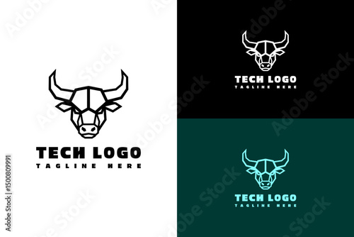 bull head design with geometric shapes illustration, vector, logo for data center, coding, it company, artificial intelligence, tech, deep learning, creativity, idea, database, and more