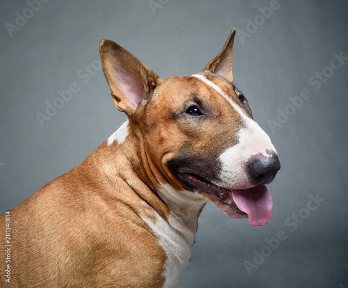 bull Terrier - portrait on a dark gray background