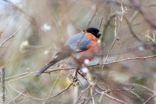 Bullfinch (Pyrrhula pyrrhula) in Phoenix Park, Dublin. Commonly found in Europe and Asia