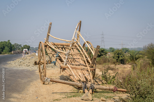 cart, farm, wagon, antique, wooden, bullock, bull, village, crop, indian, bamboo, farmer, transportation