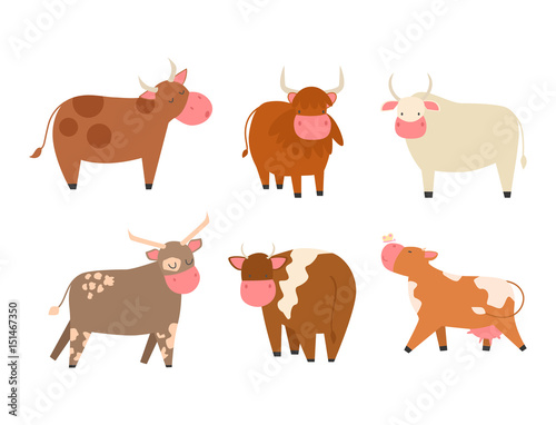 Bulls cows farm animal character vector illustration cattle mammal nature wild beef agriculture.
