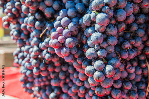 Bunch of black grapes , closeup view, natural daylight