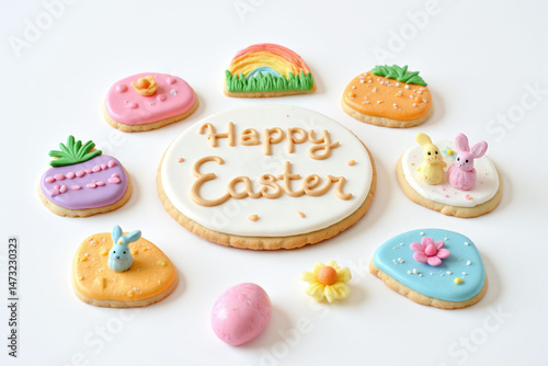 bunch of decorated easter cookies sitting on top of a table