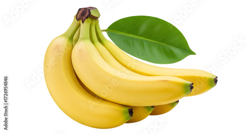 Bunch of Ripe Yellow Bananas with Green Leaf fruit