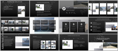 Bundle of editable business templates for digital app, web products. Vector templates for website design, presentations, portfolio, presentation slides, flyer, leaflet, brochure cover, annual report.