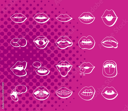 attractive, beautiful, beauty, 20, 20, number, set, group, bundle, care, cartoon, art, collection, composition, cosmetic, elegance, expression, fashion, female, girl, glamour, glossy, illustration, lady, lip, love, make-up, mouth, passion, pop, romance, romantic, seductive, sensual, sensuality, sexy, text, vector