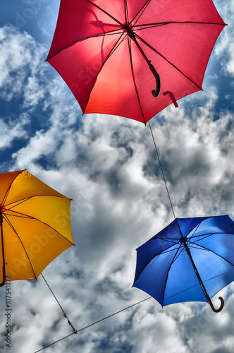 Bunte Schirme am Himmel