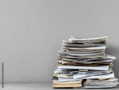 Bureaucratic Clutter With a Towering Stack of Paperwork on Gray