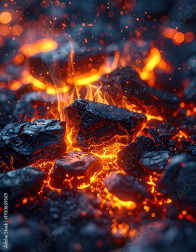 Burning coal