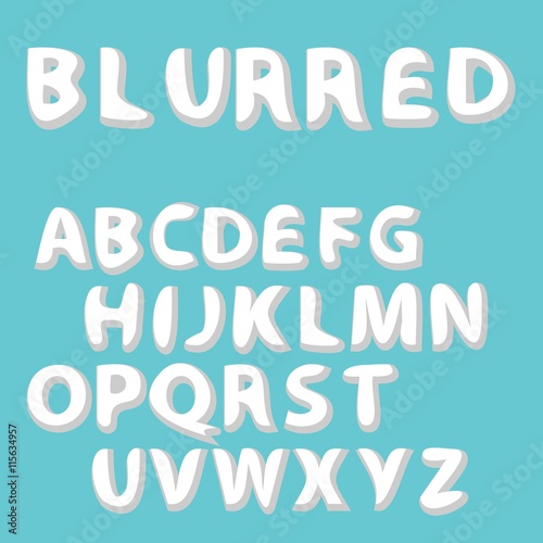 Burred label font and sample template design. Vector Alphabet Se